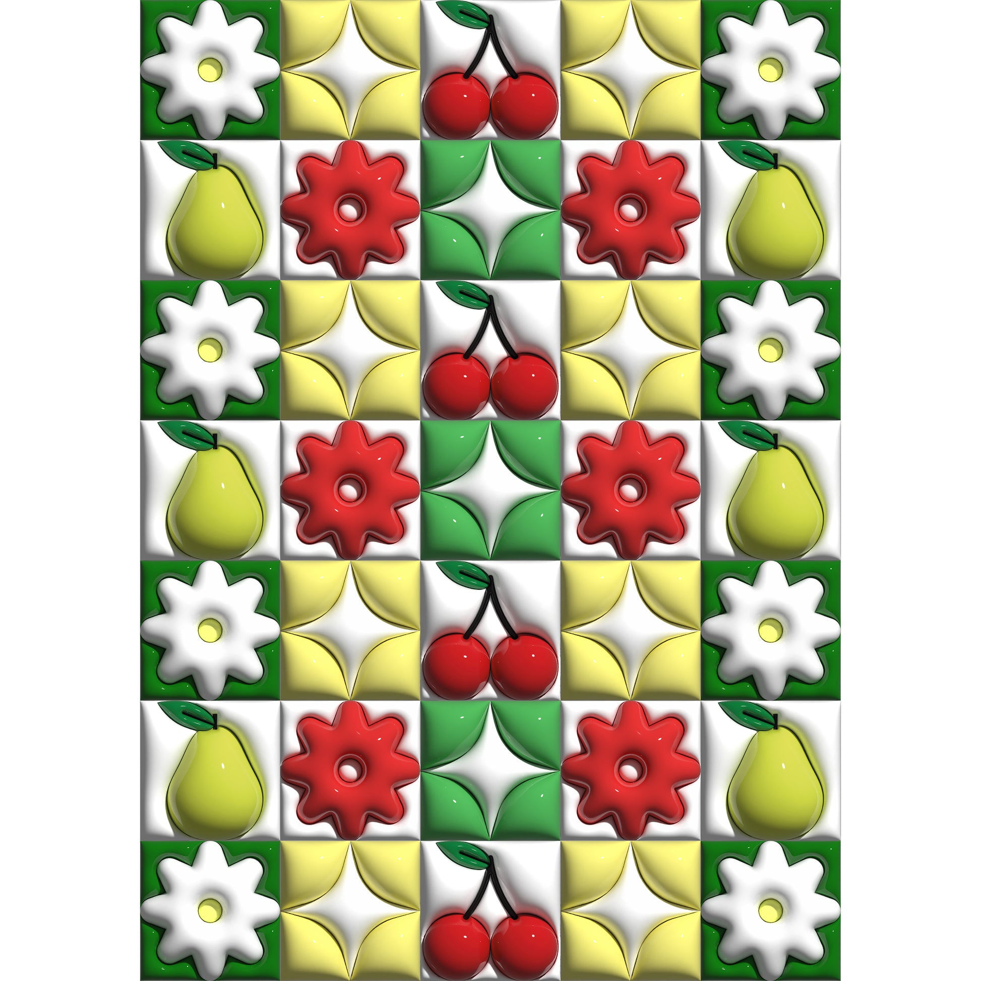 Featuring: Pears, Cherries, Red flowers, White Stars.