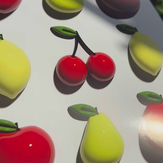 Featuring: Apples, Oranges, Lemons, Pears, Cherries, Peaches.