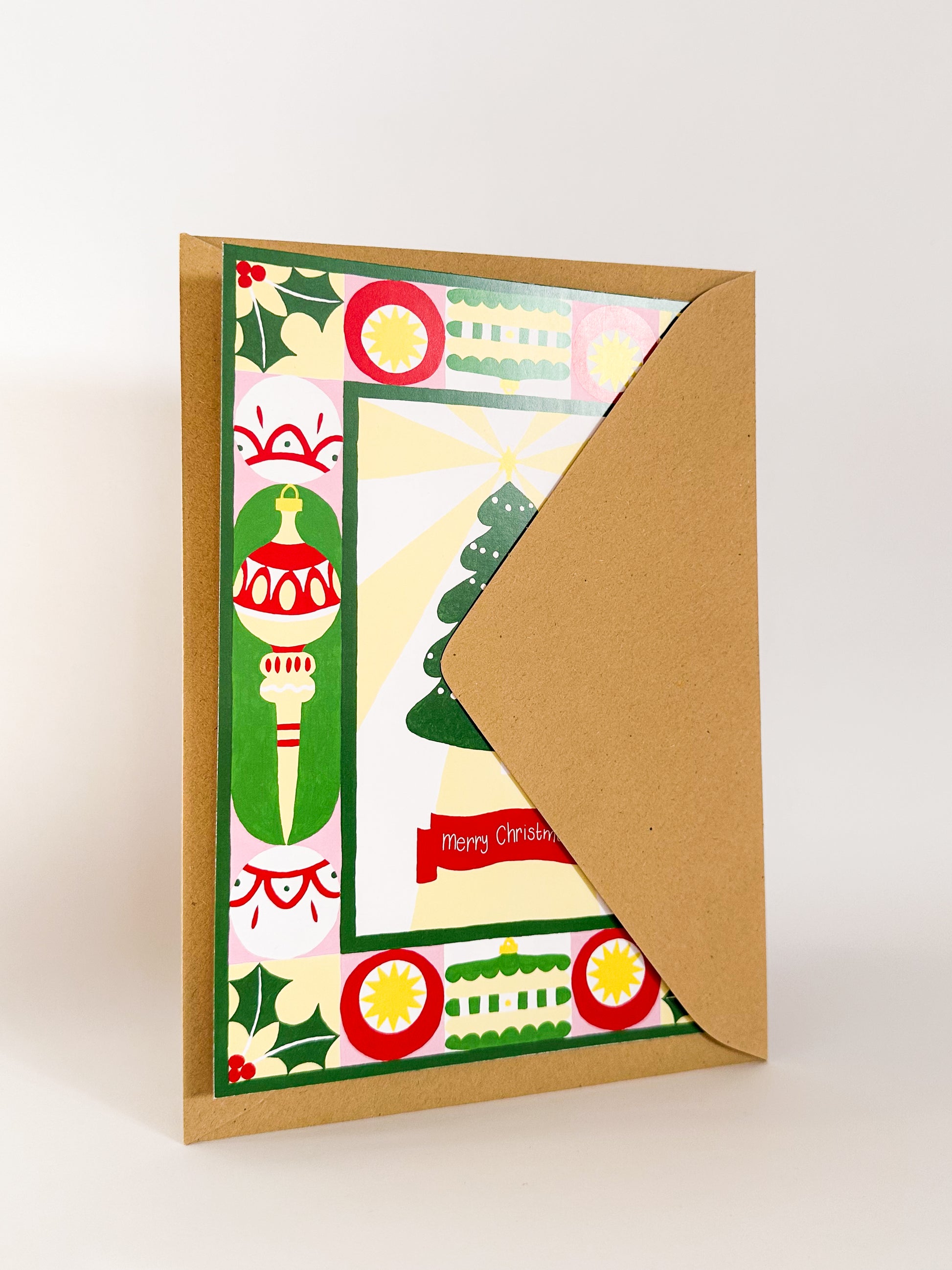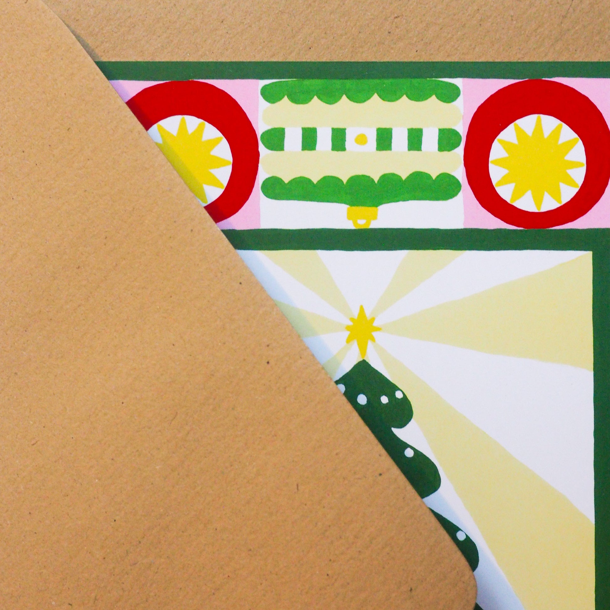 This is a double sided card which easily fits inside an A5 envelope (included). The print covers the whole front, the backside features plenty of writing space on a white painted background with ornaments which refers to the front of the card and features dedreamki's logo.