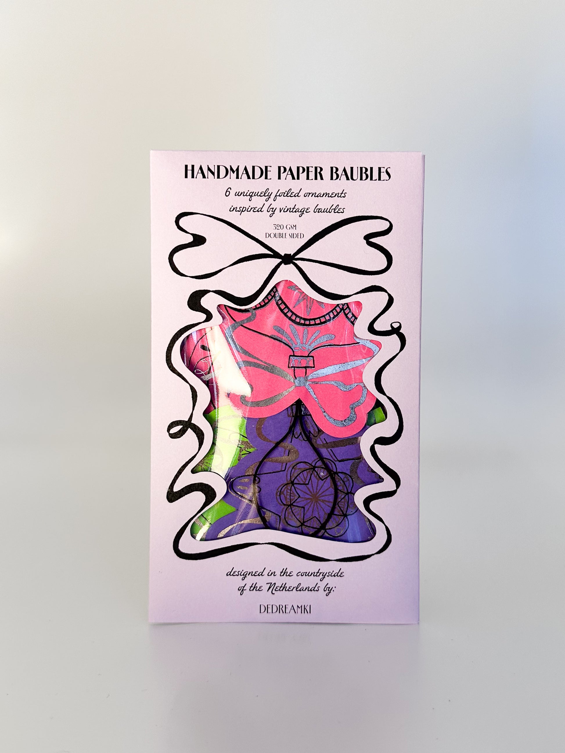 Bring a touch of christmassy nostalgia to your home with these "Handmade Paper Baubles": a set of 6 unique ornaments inspired by the timeless beauty of vintage Christmas baubles. Handcrafted from start to finish in the countryside of the Netherlands.