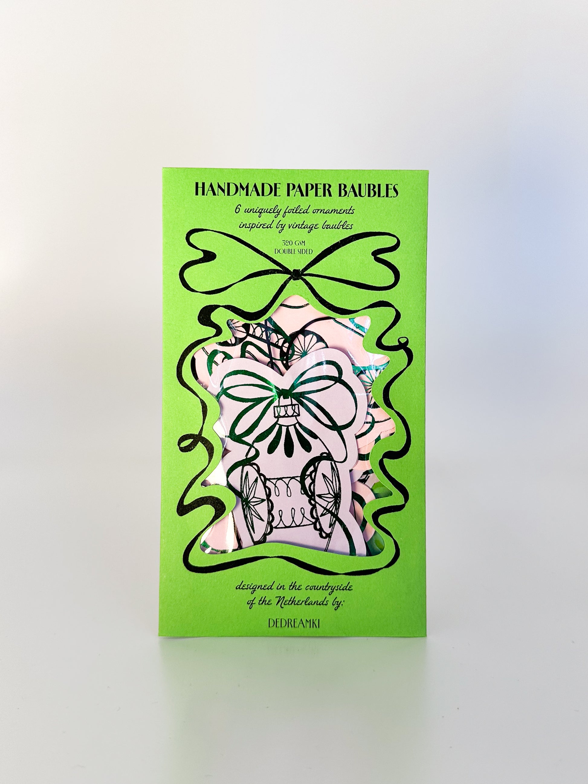 Bring a touch of christmassy nostalgia to your home with these "Handmade Paper Baubles": a set of 6 unique ornaments inspired by the timeless beauty of vintage Christmas baubles. Handcrafted from start to finish in the countryside of the Netherlands.