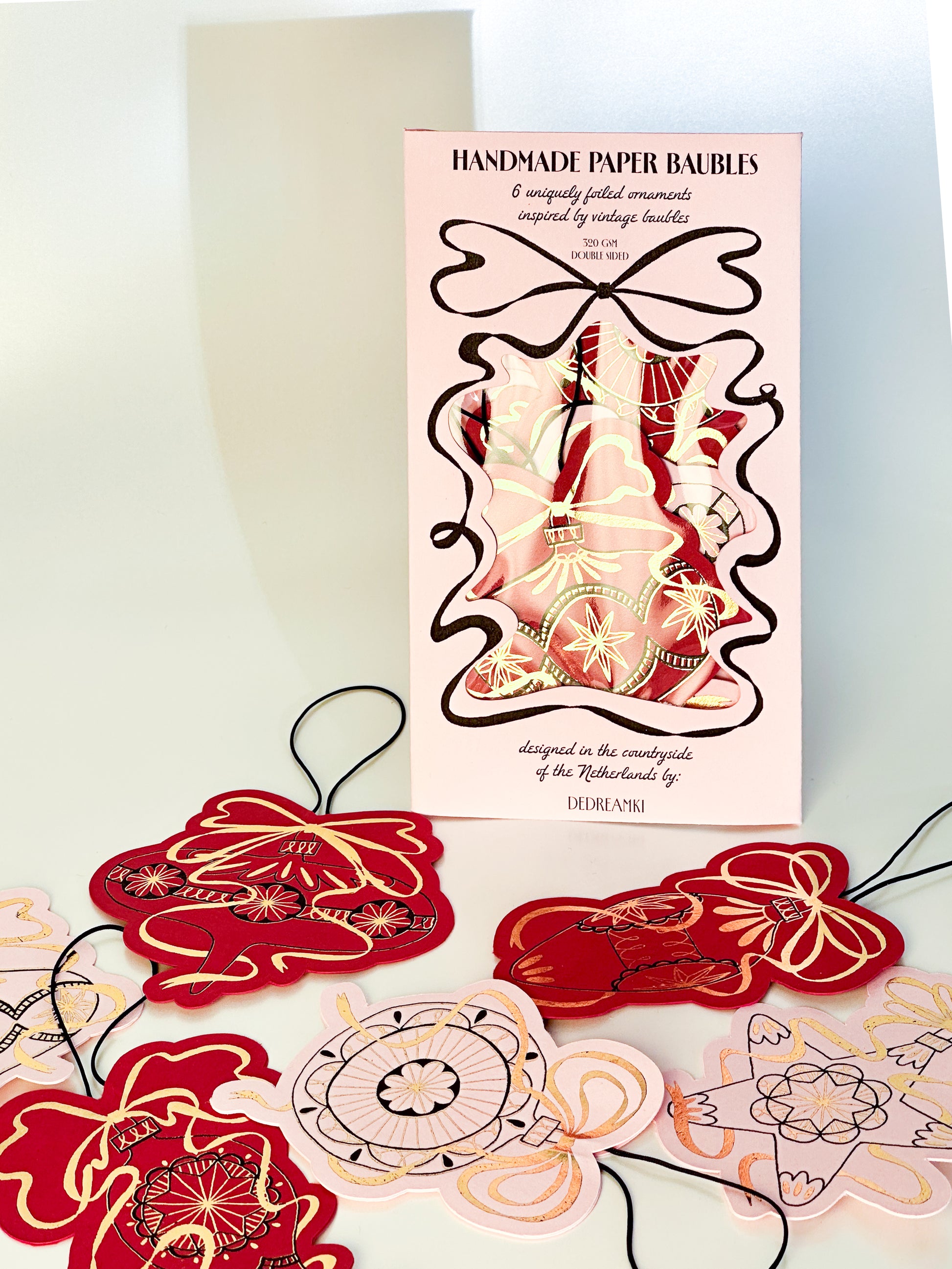 Bring a touch of christmassy nostalgia to your home with these "Handmade Paper Baubles": a set of 6 unique ornaments inspired by the timeless beauty of vintage Christmas baubles. Handcrafted from start to finish in the countryside of the Netherlands.